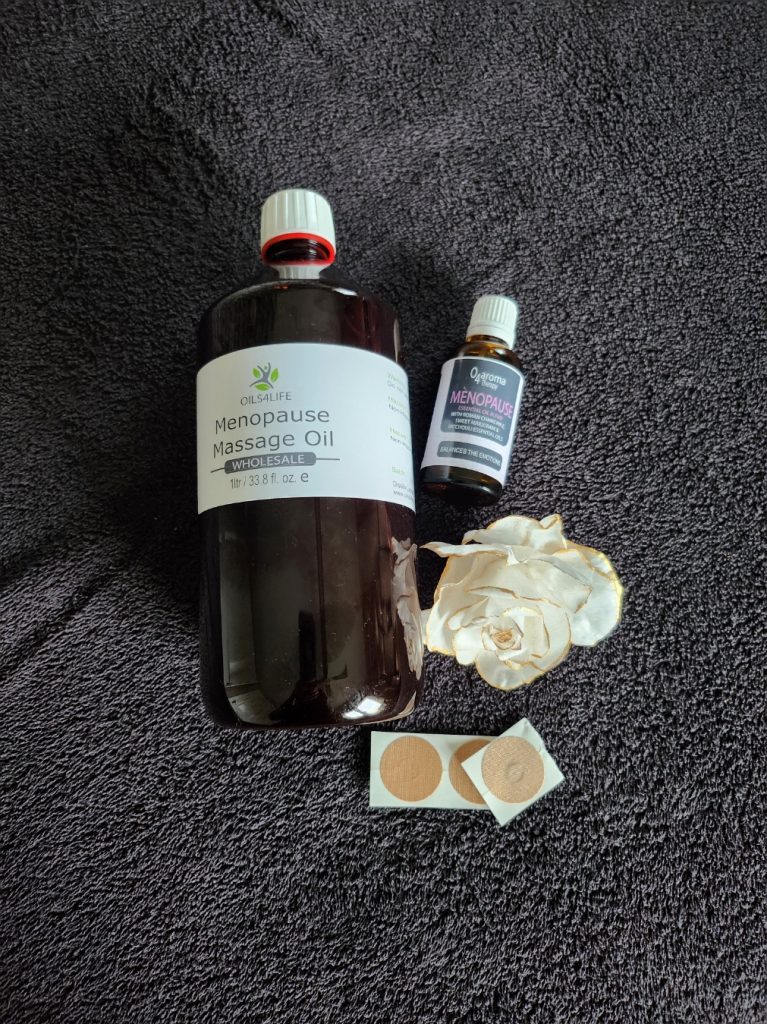 Enhance the effectiveness of your treatments with an acupressure magnet plasters, and take home oils designed for use in between sessions and as part of your at-home aftercare routine. Take control of your menopause journey with my comprehensive care.
